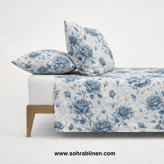 Crystal Blue Floral Bed sheet Set