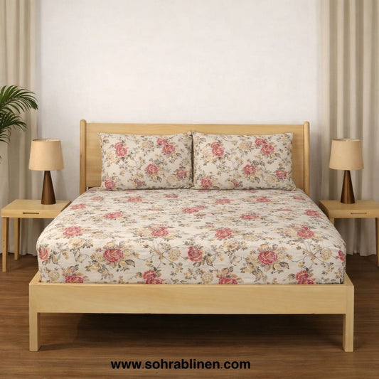 Ivory Rose Garden- A3 T-150 Bedsheet Set